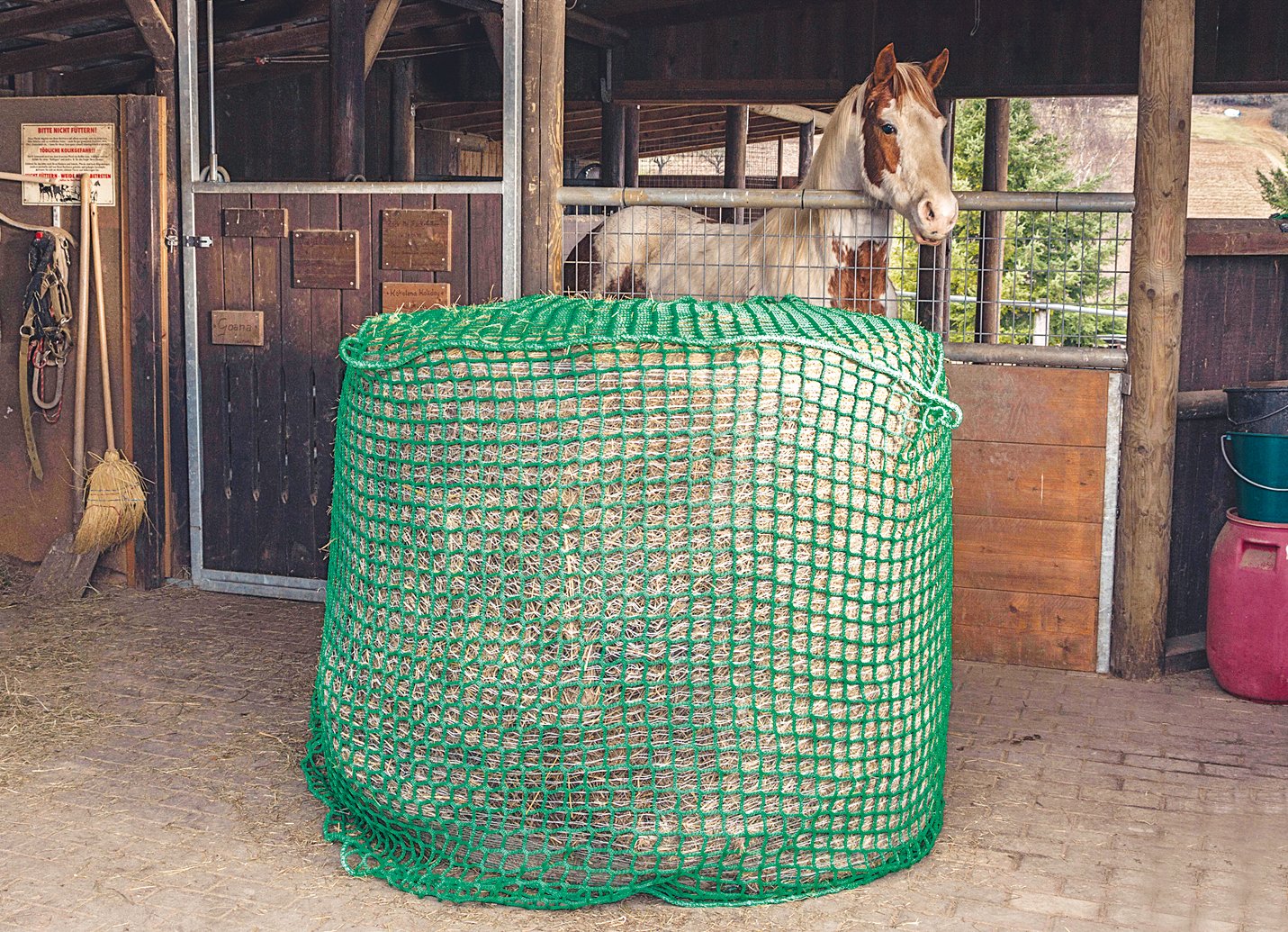 Filet pour balles de foin avec fond fermé et ouvert sur le dessus.