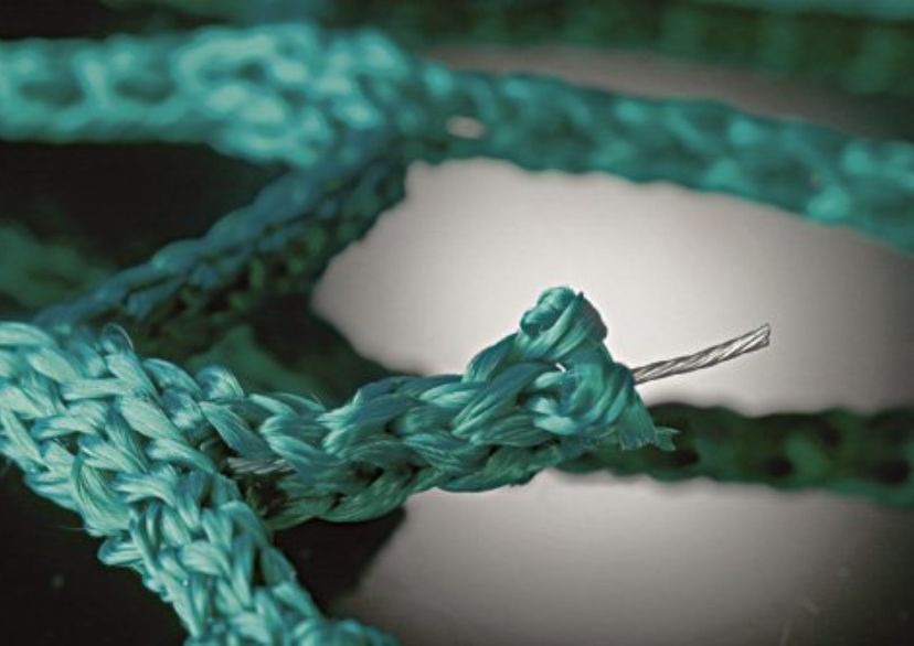 Filet sans noeuds "Mahulan steel" en polypropylène haute résistance, ignifuge, avec filin en acier inox Ø 1.25/4.75 mm.