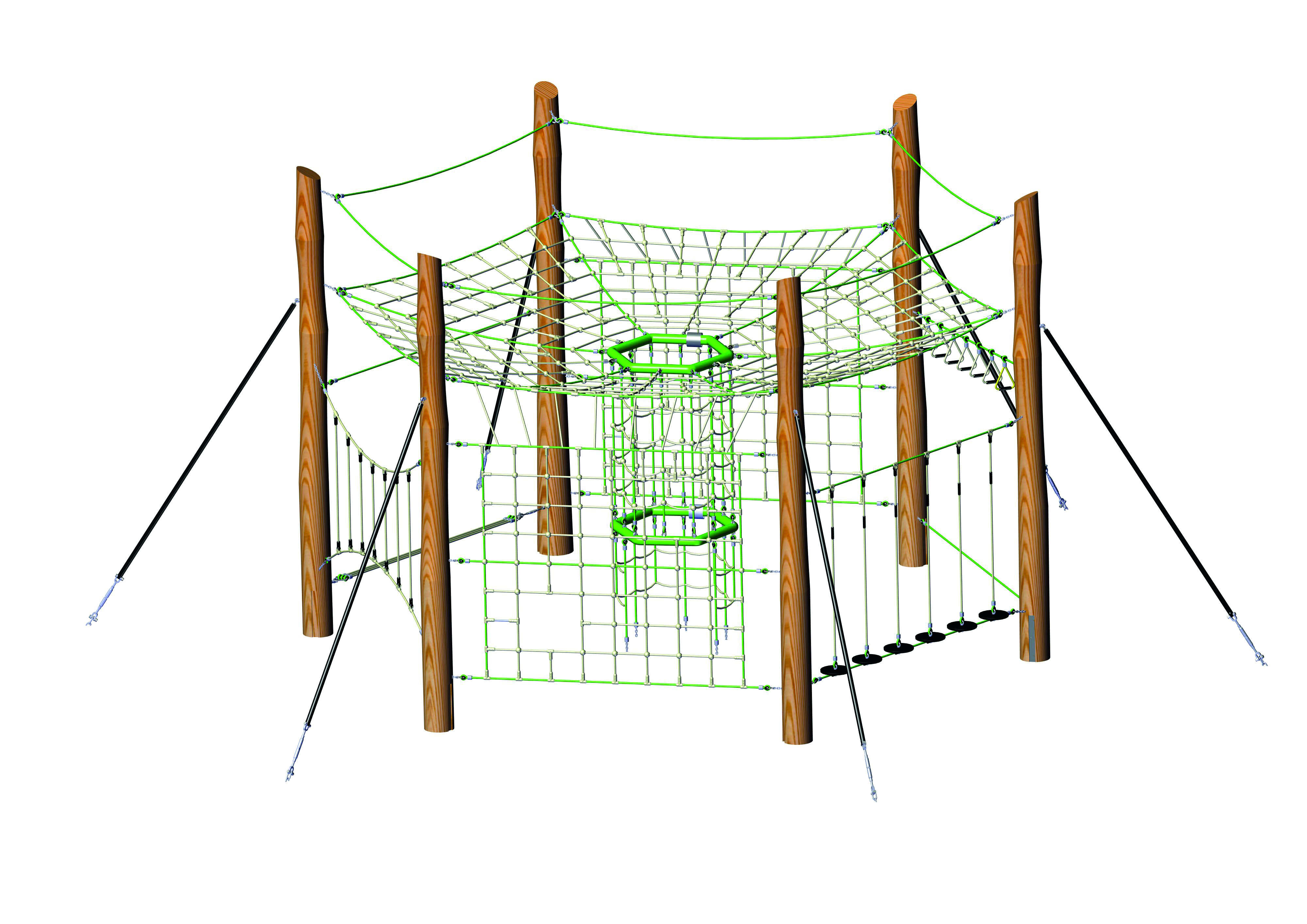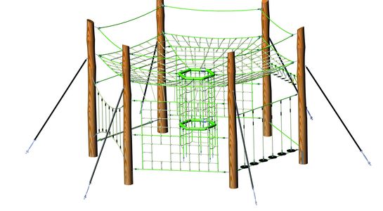 Arrivés au sommet, après l'aventure de l'escalade, ils peuvent respirer profondément et profiter de la vue sur l'ensemble de l'aire de jeu. A partir du grand filet servant de plateforme d'observation, ils peuvent guetter l'arrivée des ennemis !